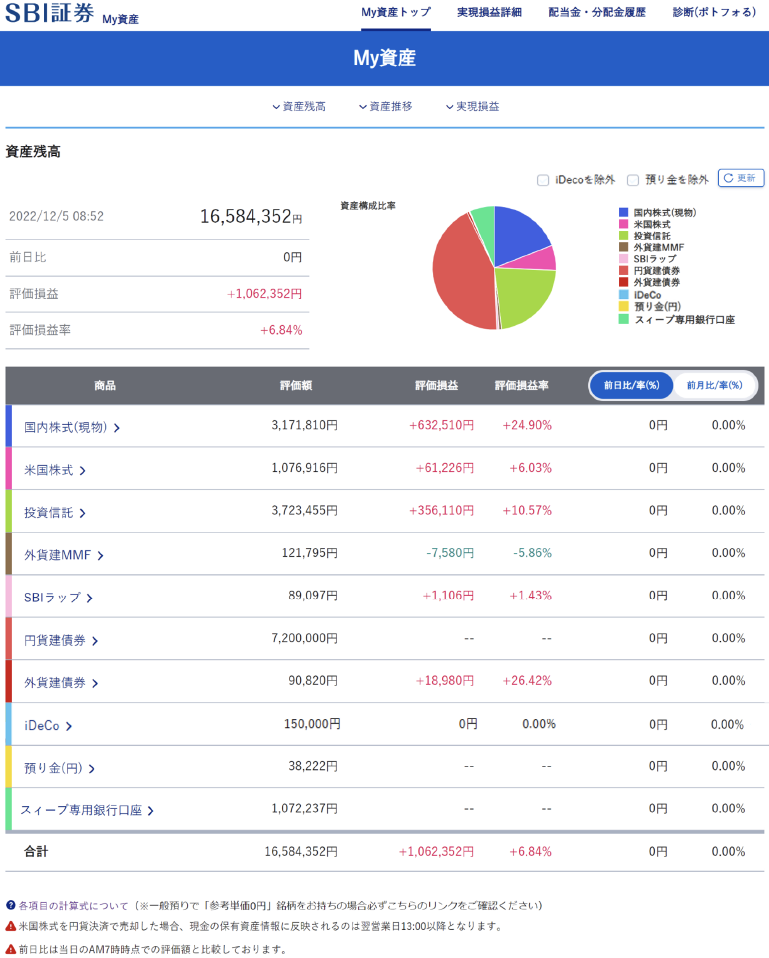 My資産では、以下の商品の保有状況を確認できます。