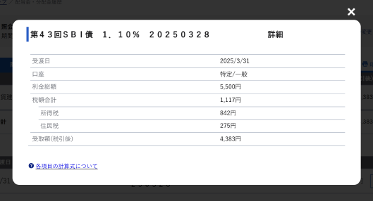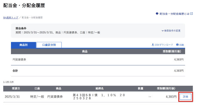 債券の利金の詳細を確認する