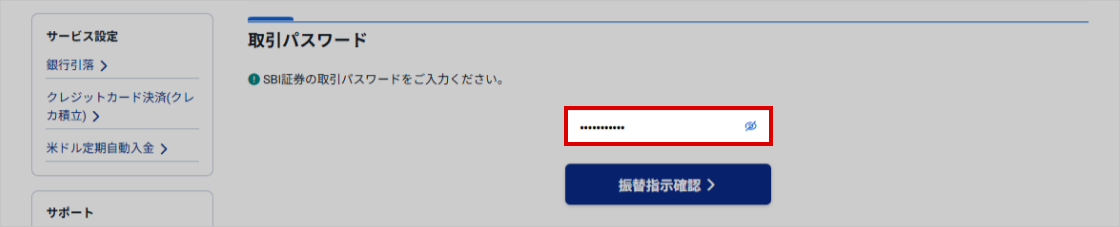 - 4. 取引パスワードを入力し、「振替指示確認」ボタンをクリックする
