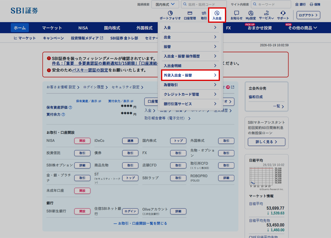 ②SBI新生銀行又は住信SBIネット銀行への「外貨(米ドル)出金」