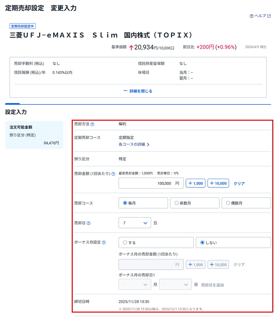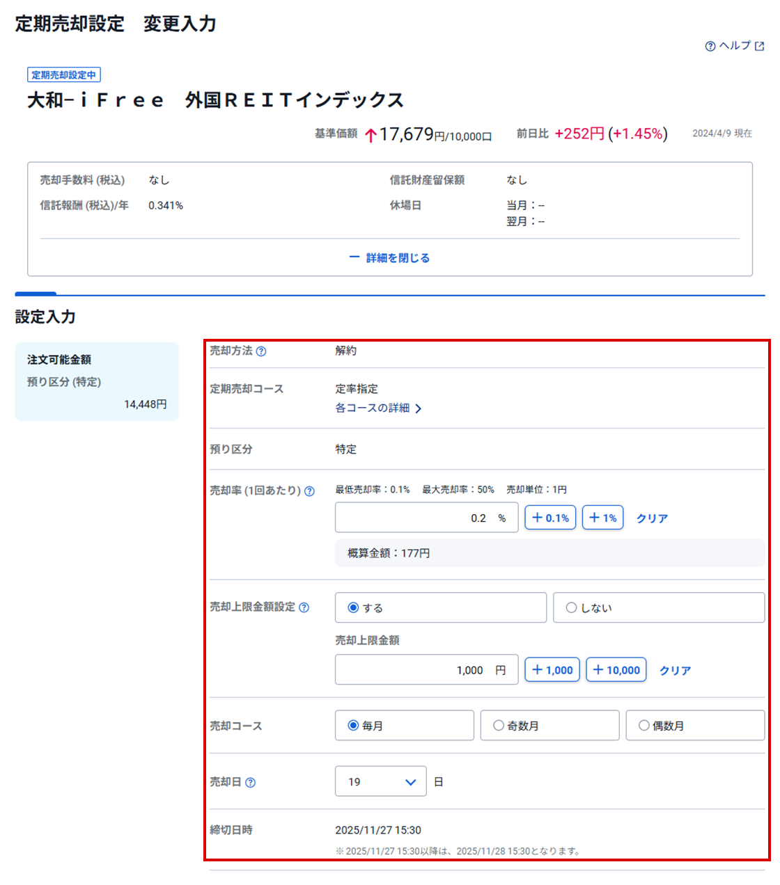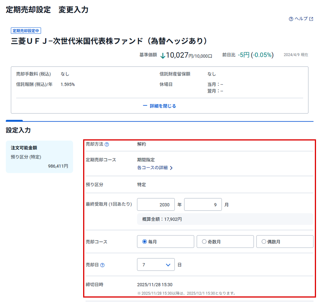 対象のファンドの定期売却設定を変更します。
