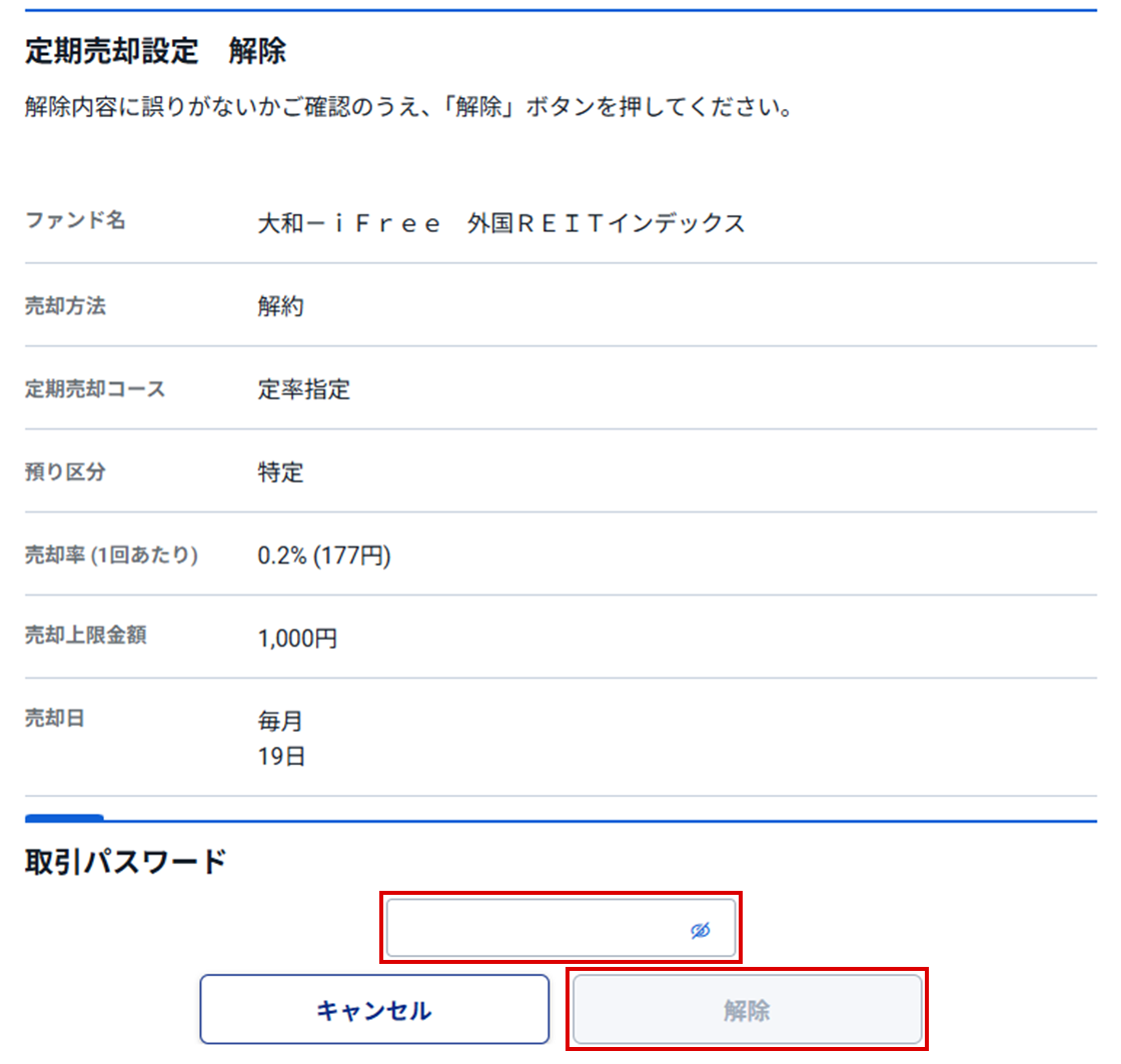 対象のファンドの定期売却設定を解除します。