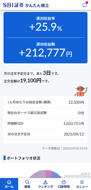 SBI証券 かんたん積立 アプリは、投信積立に必要な情報をわかりやすくご提供し、お客さまひとりひとりに合った資産形成をサポートします。