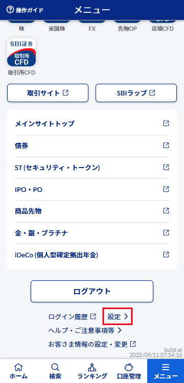SBI証券 かんたん積立 アプリの設定を変更できます。