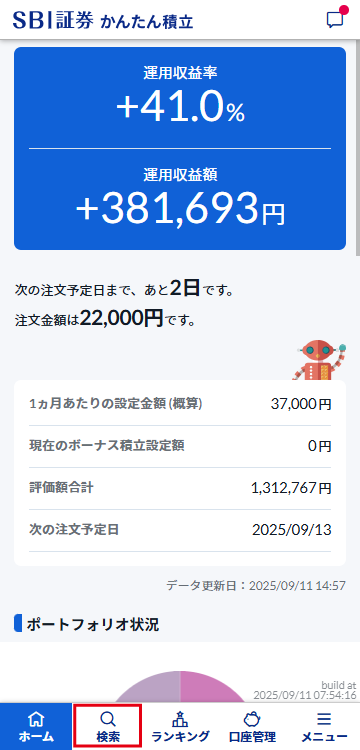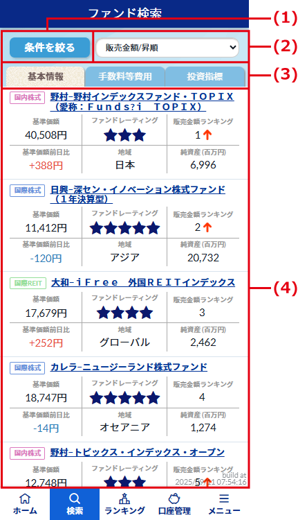 - メニューで「ファンド検索」をタップしても「ファンド検索」画面を表示できます。