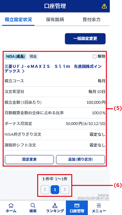 「積立設定状況」タブの構成