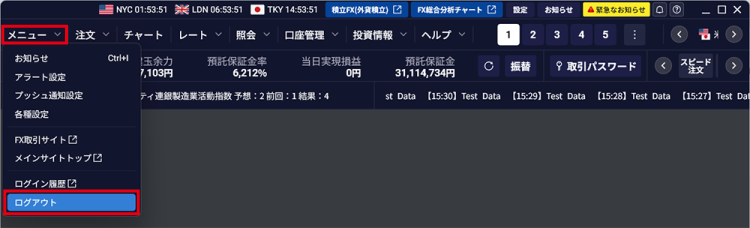 HYPER SBI FXからログアウトして、終了しましょう。