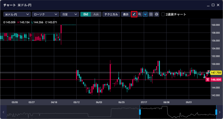 - チャートに分析線を描画する