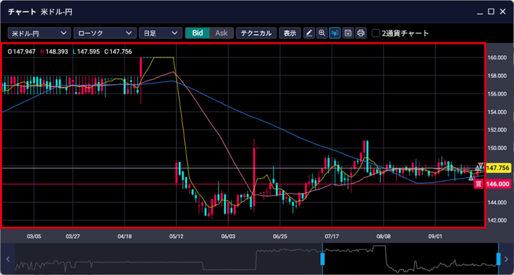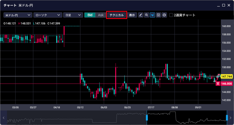 - チャートにテクニカル指標を表示する