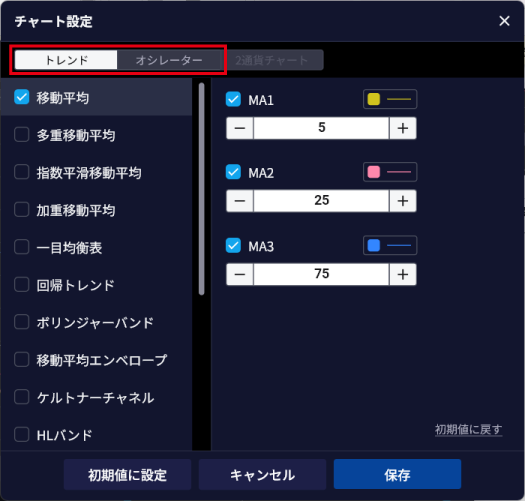 - 2. テクニカル指標の種類を選択する
