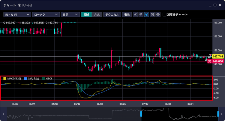 例)オシレーター:MACD