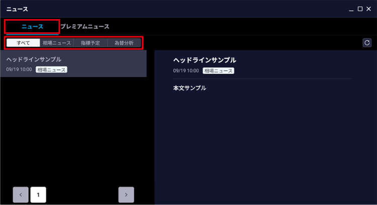 - 2. 「ニュース」タブで、ニュースの種類を選択する