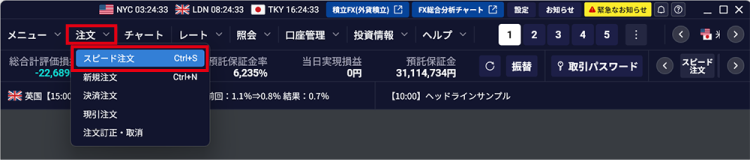- スピード注文を利用して注文を出す