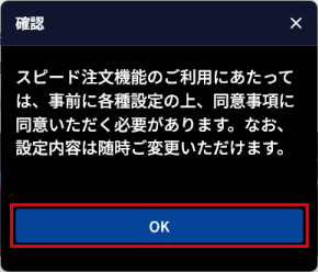 - 3. スピード注文の初期設定を行い、「同意事項を確認する」ボタンをクリックする