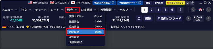 - 1. メインメニューの「照会」-「約定照会」をクリックする
