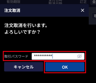 - 3. 取引パスワードを入力し、「OK」ボタンをクリックする