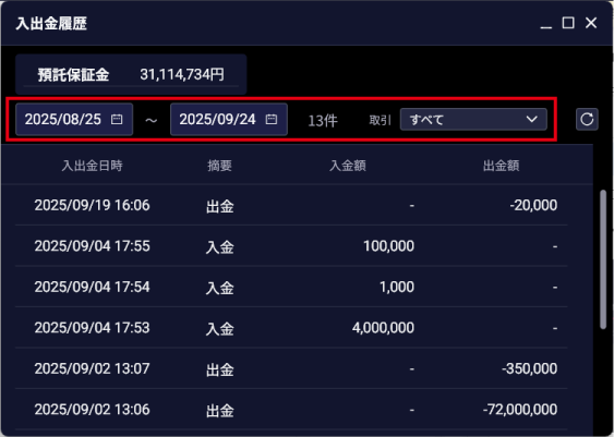 - 2. 必要に応じて、条件を設定して入出金履歴を絞り込む