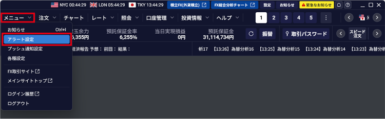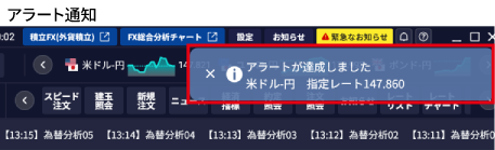 - アラート通知は、HYPER SBI FXを起動している間のみ、通知を受け取ることができます。