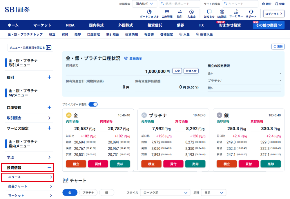 - 1. サイドナビの「投資情報」-「ニュース」をクリックする
