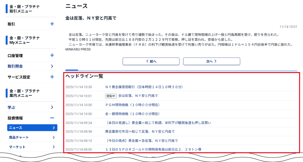 金・銀・プラチナ取引に関連するニュースを確認できます。