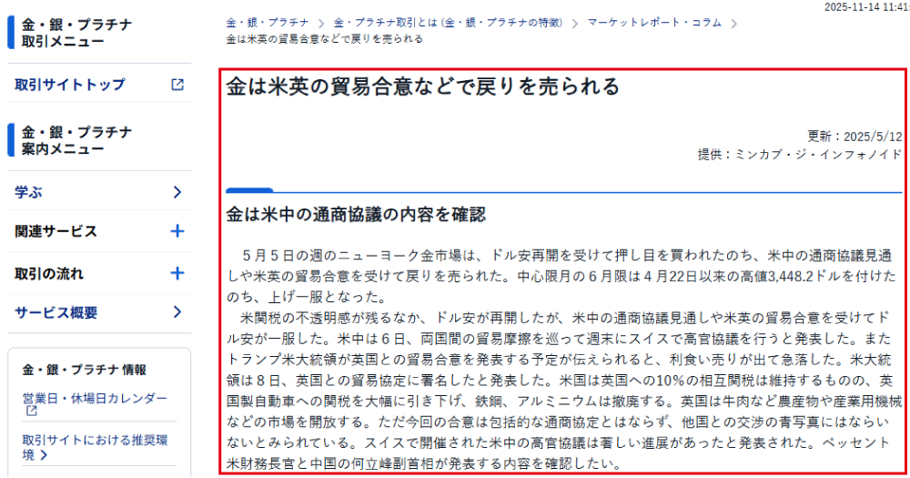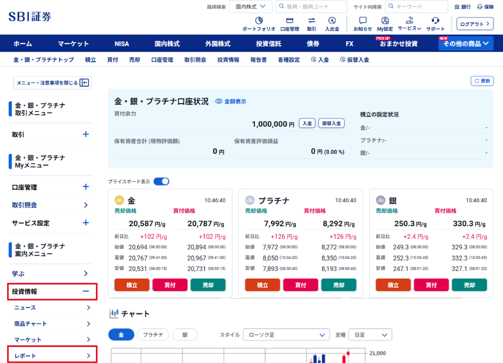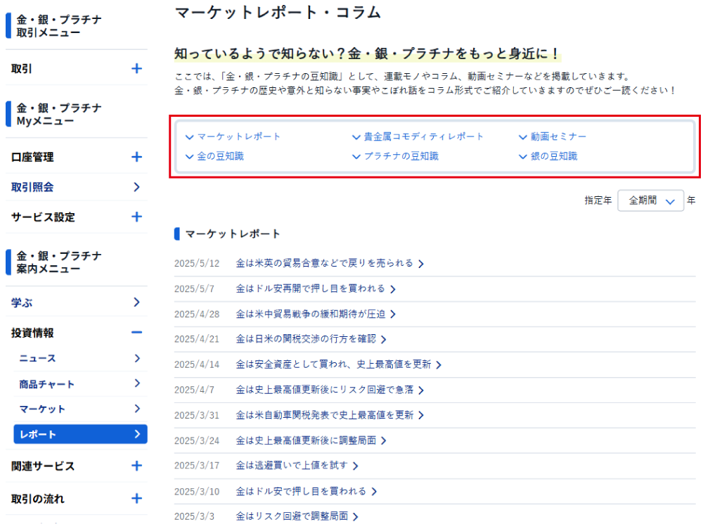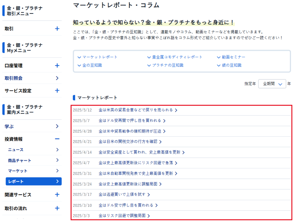 金・銀・プラチナやその他のコモディティに関するレポートなどを閲覧できます。