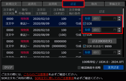 - 注文株数の訂正