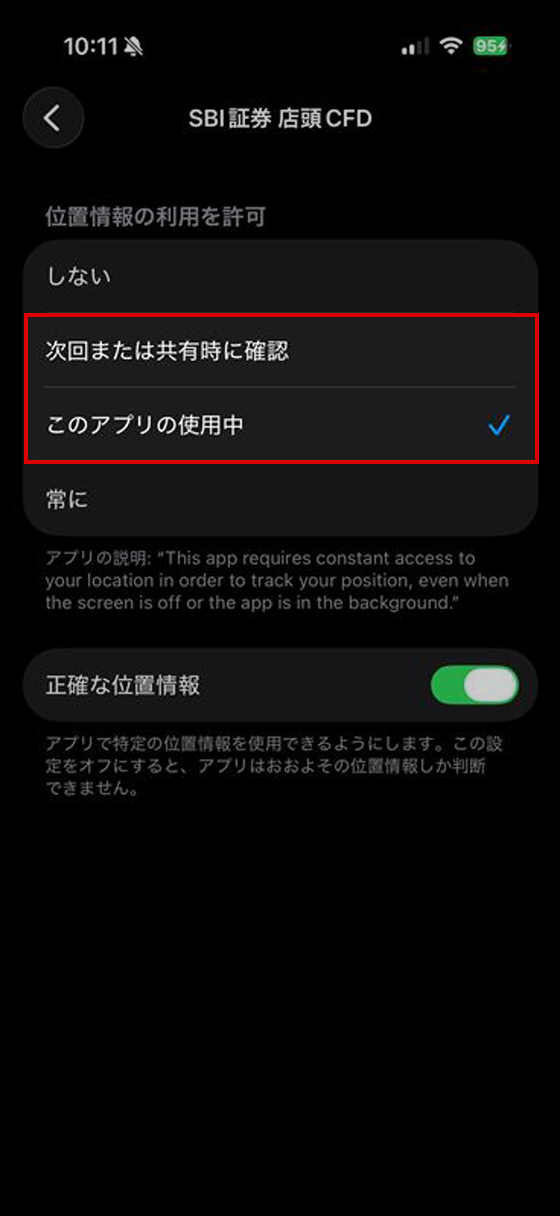 - 5. 「次回または共有時に確認」または「このアプリの使用中」を選択