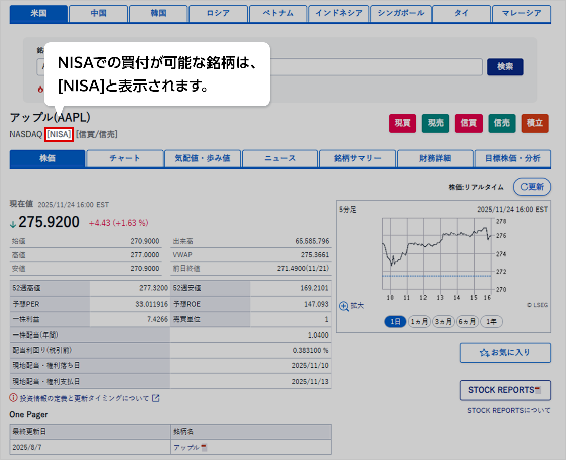 ■外国株式トップ>銘柄検索>個別銘柄詳細画面